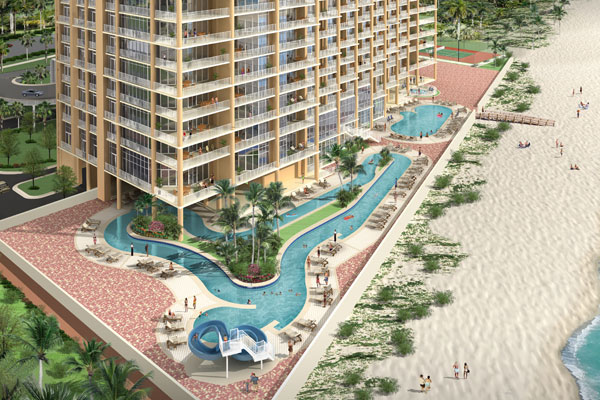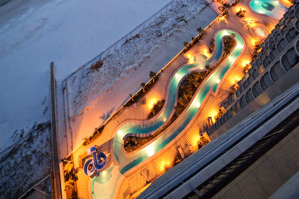 • Gulf-front Lazy River water • Glassed-in Parking • Dramatic Multi-level Lobbies • Outdoor Pool • Indoor pool • Tennis Courts • Hot tubs and sauna • Multi-level Fitness Center • Wireless Internet Access Throughout • Large Meeting Rooms